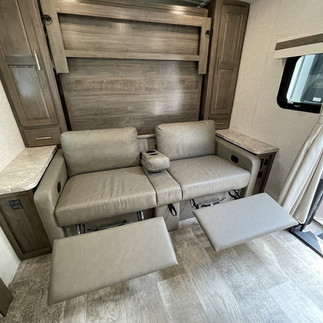 フロントにマーフィータイプのベッド、リアに2段ベッドを備えたモデルになります。