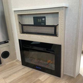 フロントに大きな窓を備えた眺めのいい大型L字キッチン!収納も豊富です。 ダイネット部がスライド部分になっており、スライドさせたリビング部は圧巻の広さ トレーラーなのに廊下があり(笑)その先には完全個室の寝室があります。人目につかづプライバシーもバッチリですね。 リビングにはファイヤープレイズも備わり癒やしもバッチリ。 買って間違いない!って強く言えるモデルです。